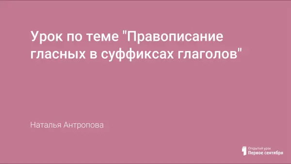 Представлен первый урок по теме. Урок знакомит учащихся с правописание суффиксов глаголов -ова-(-ева-), -ыва-(-ива-). Дети учатся владеть способом действия при выборе гласных в суффиксах глаголов. Урок направлен на развитие логического мышления, внимания, памяти, речи.