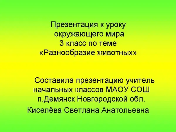 Урок окружающего мира "Разнообразие животных". 3-й класс