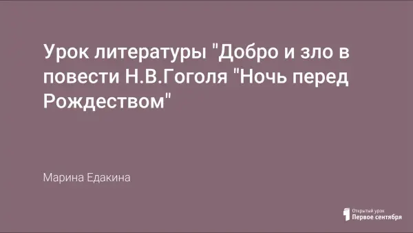 Урок литературы "Добро и зло в повести Н.В.Гоголя "Ночь перед Рождеством"