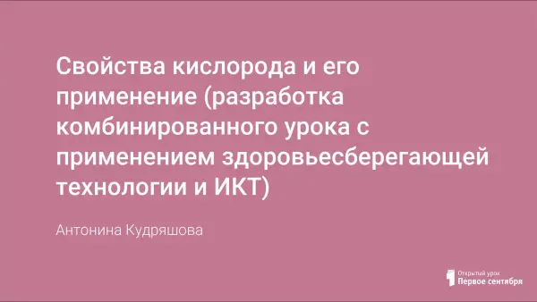Свойства кислорода и его применение (разработка комбинированного урока с применением здоровьесберегающей технологии и ИКТ)