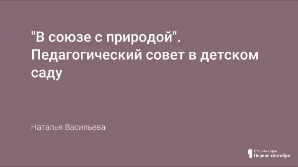 Представлен сценарий педагогического совета «В союзе с природой». В процессе целенаправленной работы детского сада и родителей можно сформировать у детей экологическую культуры, экологическое мышление, экологическое сознание, экологически оправданное отношение с природой.