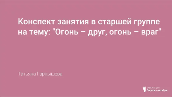 Конспект занятия в старшей группе на тему: "Огонь – друг, огонь – враг"