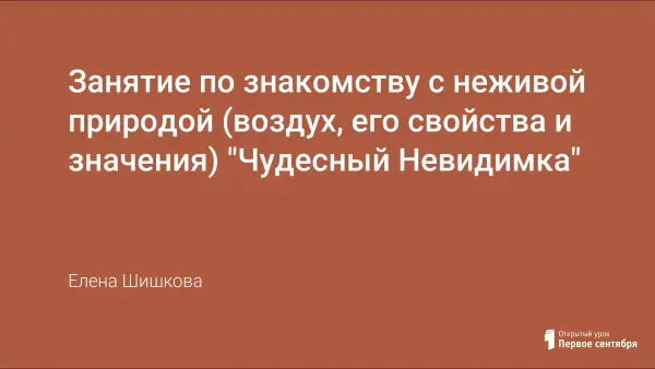 Занятие знакомит детей с неживой природой, формирует представление о воздухе, его свойствах и значении. Цель: развивать познавательную активность детей в процессе экспериментирования, расширять знания детей о воздухе; формировать и развивать практические навыки в исследовательской, экспериментальной деятельности, навык самостоятельной деятельности.
