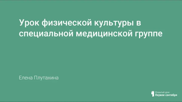 Урок физической культуры с детьми начальных классов (1–4-е классы), отнесёнными по состоянию здоровья к специальной медицинской группе. На уроке закрепляются навыки правильной осанки, развиваются память, мышление и внимание, воспитываются дисциплинированность и самостоятельность.