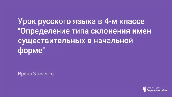 Урок русского языка разработан с применением ИКТ. На уроке дети учатся правильно определять тип склонения имен существительных в начальной форме. Использование компьютера и экрана на уроке позволяет сделать урок более интересным, материал легче запоминается детьми.