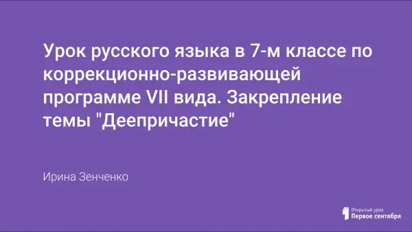 Урок подготовлен для работы с детьми, обучающимися по специальной коррекционно-развивающей программе VII вида. Тема урока: закрепление изученного материала по теме «Деепричастие». Чтобы заинтересовать детей работой, урок насыщен игровыми моментами.