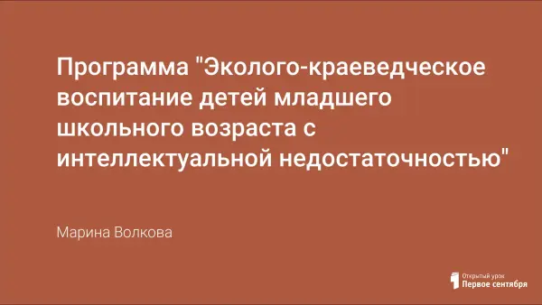 Реализация программы учитывает особенности психологических аспектов детей с интеллектуальными отклонениями и основана на идее формирования экологической культуры «от малого к большему». Основная цель программы: формирование экологической грамотности ребенка через организацию правильного взаимодействия с окружающей природой.