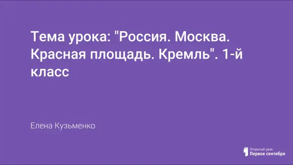 На уроке предлагается систематизировать знания детей о России, познакомить учащихся с символами РФ: флаг, герб, гимн. Также рассказать о Москве и познакомить с некоторыми ее достопримечательностями.
