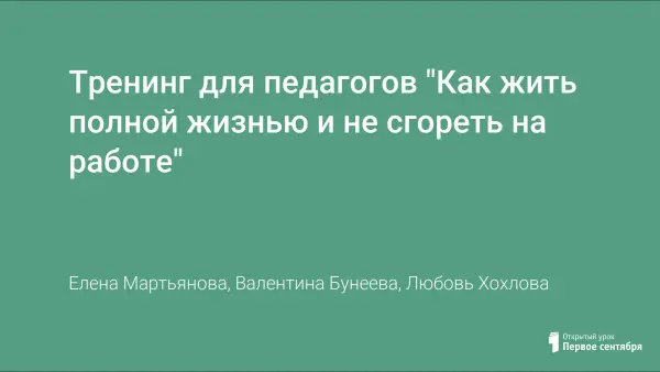 Тренинг разработан для педагогов образовательных учреждений с целью повышения уровня компетентности по профилактике профессионального выгорания. Предлагаются современные техники и способы профилактики профессионального выгорания (релаксационная музыка, антистрессовый комплекс упражнений, фиточай).