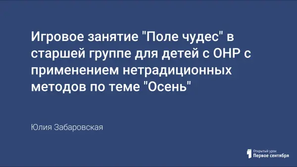 Игровое занятие "Поле чудес" в старшей группе для детей с общим недоразвитием речи с применением элементов нетрадиционных технологий в логопедии: музыкотерапии и ароматерапии по теме: "Осень". На уроке идет проверка и обобщение знаний, расширение и активизация словаря, развитие логического мышления, развитие физиологического дыхания, силы голоса, развитие интонационной силы голоса, развитие переключаемости органов артикуляционного аппарата.