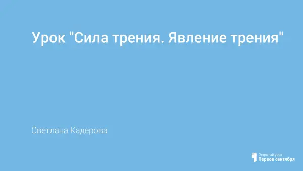 Урок знакомит учащихся с явлением трения как новым видом взаимодействия тел; формулировка понятия "сила трения"; экспериментально установить зависимость этой силы; выяснить причины появления силы трения и виды трения.