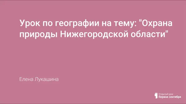 Урок помогает сформировать целостное представление у школьников о природе Нижегородской области; развивать мировоззрения школьников и их творческого интереса на примере изучения природы Нижегородской области, воспитание бережного отношения и любви к природе своего края.