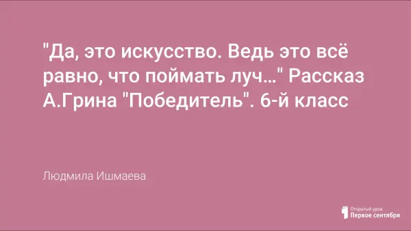 Урок посвящен изучению рассказа А.Грина "Победитель". В произведении знаменитого писателя ставятся важнейшие нравственные вопросы, актуальные для развития личности школьника. Проблема выбора, достойного имени человека, проблема истинного и ложного искусства не могут оставить равнодушными современного читателя.