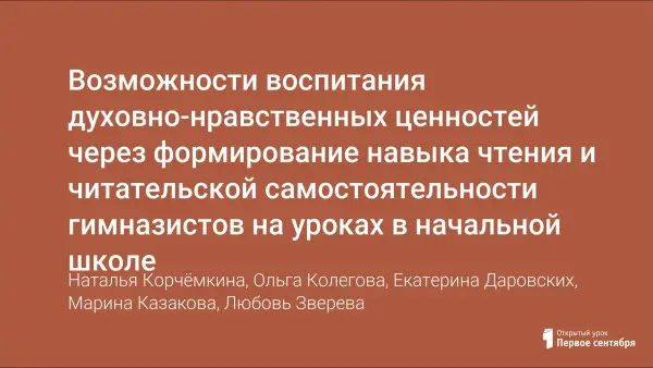Возможности воспитания духовно-нравственных ценностей через формирование навыка чтения и читательской самостоятельности гимназистов на уроках в начальной школе