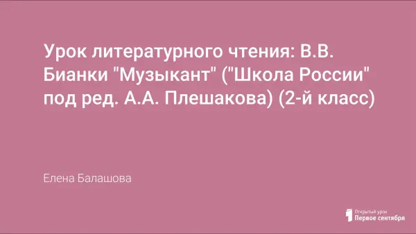 Урок знакомит учащихся с произведением В.Бианки "Музыкант". Учит детей выразительно читать, развивает память, внимание, мышление, обогащает словарный запас. Воспитывает любовь и бережное отношение к животным.