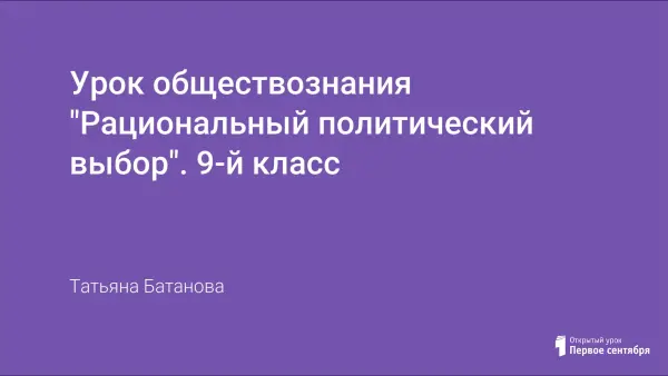 Цель урока: знать/понимать, что такое рациональный политический выбор, какие элементы оно включает; уметь анализировать современную российскую политическую действительность; развивать аналитическое мышление, умение строить логические связи между объектом и его функциями; умение сжимать информацию в виде схемы; формировать навыки ситуативного анализа; воспитывать стремление к активной сознательной гражданской позиции, как важному способу успешной жизнедеятельности человека в современном обществе.