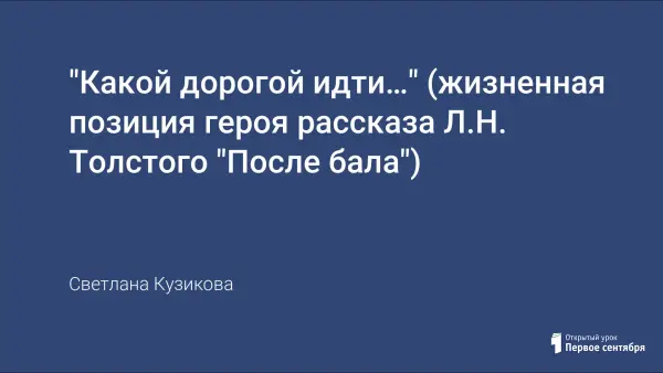 На уроке рассматривается личность Толстого как воплощение совести, мучительного поиска истины. Проводится беседа с целью выявления восприятия прочитанного. Рассматривается мысль автора о моральной ответственности человека за все происходящее вокруг. Выявление жизненной позиции героя Ивана Васильевича в рассказе «После бала».