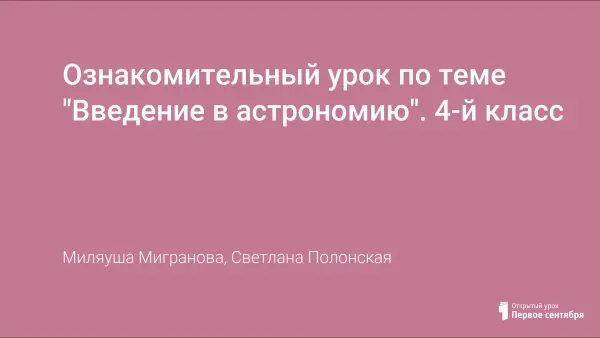 Ознакомительный урок по теме "Введение в астрономию". 4-й класс