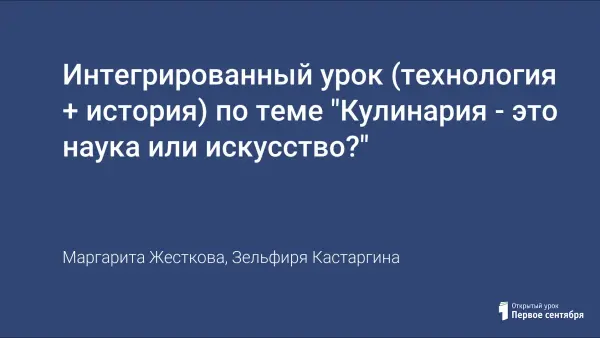 Урок в рамках элективного курса «Основы кулинарии» в 11-м классе профильной группы является интегрированным (история и обществознание). Цели урока: познакомить с историей кулинарного ремесла; показать тесную связь кулинарии с историей, химией, биологией, физикой, и др. науками; показать влияние оформления блюд на аппетит человека; научить готовить изысканное блюдо из заварного теста.