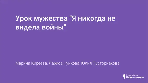 Урок мужества разработан с учетом краеведческого материала. В основу мероприятия положена компьютерная презентация, рассказывающая о трех войнах, выпавших на долю русского народа: Великой Отечественной, Афганской, Чеченской. Авторы использовали как документальный, так и литературные материалы.