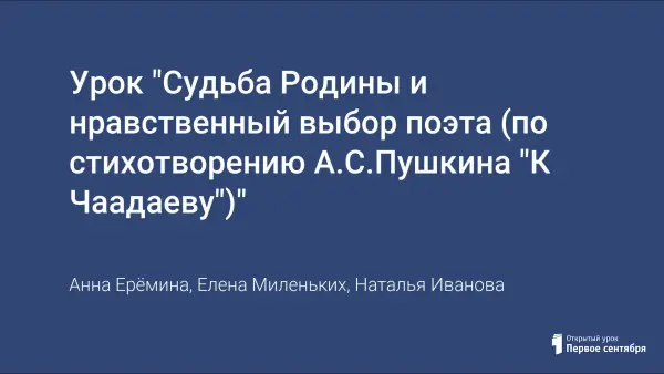 Урок "Судьба Родины и нравственный выбор поэта (по стихотворению А.С.Пушкина "К Чаадаеву")"