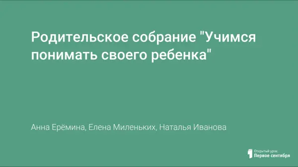 Родительское собрание "Учимся понимать своего ребенка"
