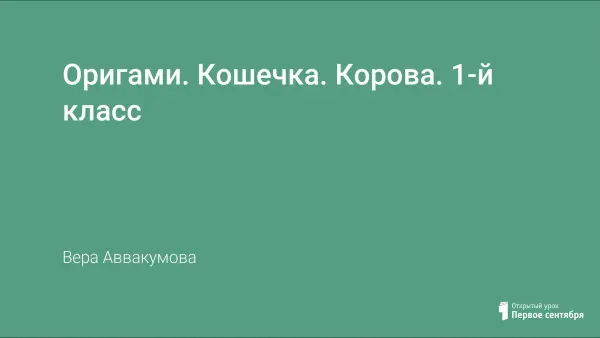 Оригами. Кошечка. Корова. 1-й класс