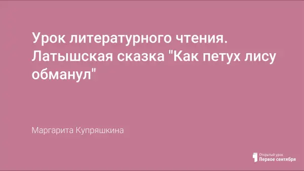 Урок литературного чтения. Латышская сказка "Как петух лису обманул"