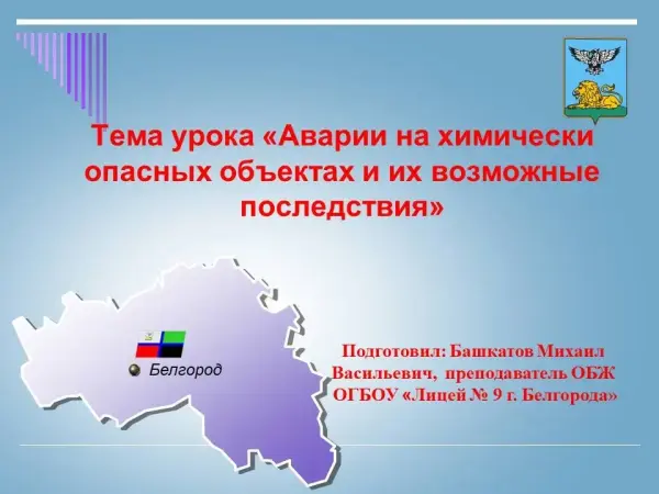 Цели урока: познакомить учащихся с аварийно химическими веществами, находящимися на территории Белгородской области, и порядком действий в случаи их аварийного выброса.