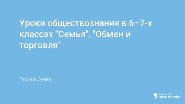 Учебный предмет «Обществознание» изучается с 6 по 11-й классы. Таким образом, созданы условия непрерывного воздействия средствами учебного предмета на процесс социализации учащихся. Предлагаю разработки уроков обществознания в 6–7-х классах по темам «Семья» и «Обмен и торговля». При подготовке и проведении уроков используется повесть Юрия Куранова «Тепло родного очага».