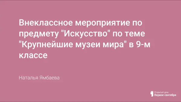 Внеклассное мероприятие проводится с целью обобщения представлений о художественных музеях мира и хранящихся в них произведениях искусства. Беседа об истории возникновения и историческом значении музейного искусства, использование ИКТ, Интернет-ресурсов позволяет посетить учащимися музей виртуально, абстрактно.
