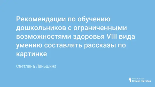 В статье представлены методические рекомендации по обучению дошкольников с ограниченными возможностями здоровья VIII вида составлению рассказов по картинам. Новизна заключается в использовании: приёма моделирования, т.е. планирования рассказа с помощью предметных карточек и графических символов; пластических этюдов с речевым сопровождением.