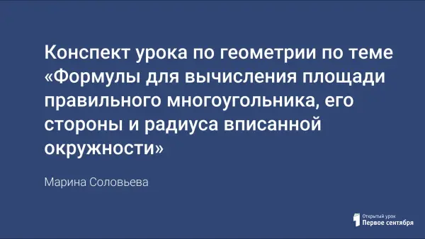 Цели урока: выработать у учащихся умение выводить формулы, связывающие радиус описанной окружности и радиус вписанной окружности со стороной а правильного n-угольника, выработать навыки применения полученных знаний при решении задач.
