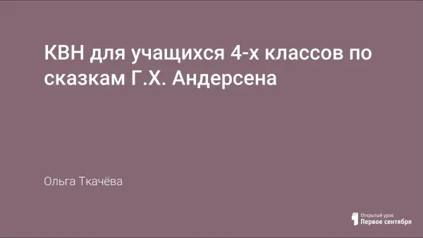 Представленная работа является сценарием внеклассного мероприятия по литературному чтению в 4-м классе, проводимого в форме КВН с целью обобщить и систематизировать знания по сказкам Г.Х. Андерсена; прививать интерес к чтению художественной литературы, воспитывать внимательное отношение к литературному слову, развивать любознательность, понимание необходимости много читать, чтобы много знать и разбираться в людях; прививать стремление быть эрудированным.