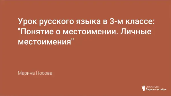 Урок русского языка в 3-м классе: "Понятие о местоимении. Личные местоимения"