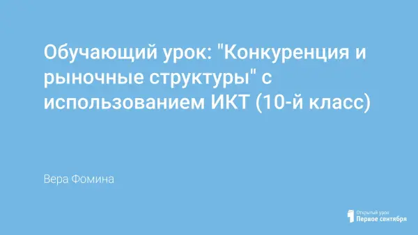 Обобщающий урок экономики в 10-м классе с использованием ИКТ с целью закрепить знания по теме «Конкуренция и рыночные структуры», умения экономического анализа структуры рынка, навыки решения задач по данной теме; развивать логическое и творческое мышление.