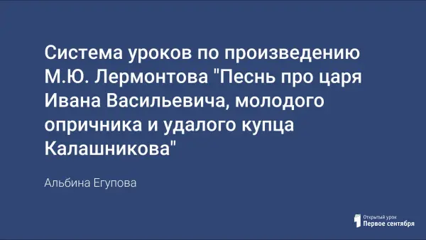 Система уроков "Песнь о купце Калашникове" поможет учителю в рамках двух уроков рассмотреть образы произведения, понять его народно-поэтическую основу, причины обращения поэта к далекому прошлому и его роль в современном Лермонтову настоящем. Учитель предлагает также сравнительный анализ отрывков былины и "Песни" и сравнительный анализ рисунков В. Васнецова к "Песни".