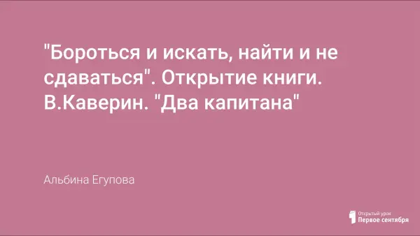 Урок по роману Каверина построен в форме беседы по прочитанному произведению с демонстрацией предполагаемых ответов на слайдах. Включены сообщения заранее подготовленных учащихся о жизни и творчестве Каверина, истории написания романа и его прототипах, памятнике героям Каверина во Пскове, рассказ учителя о мюзикле "Норд-Ост" с просмотром видеоролика.