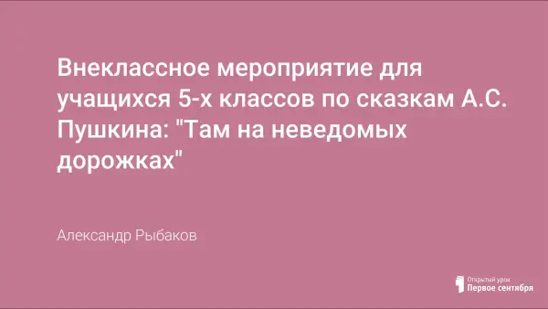 Данное внеклассное мероприятие, посвященное сказкам А.С. Пушкина, проводится учащимися 5-го класса, которые перевоплощаются в литературных героев. Они задают вопросы по сказкам, предлагают угадать названия произведений по иллюстрациям, проводят конкурс сказочных телеграмм, конкурс чтецов и художников. Мероприятие способствует творческому восприятию литературного произведения и осознанию его связи с изобразительным искусством.