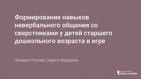 Формирование навыков невербального общения со сверстниками у детей старшего дошкольного возраста в игре