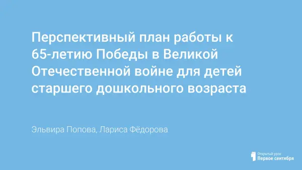К 65-летию Победы в рамках работы по нравственно-патриотическому воспитанию детей дошкольного возраста авторы статьи разработали план работы для детей старшей группы. План работы предусматривает совместную работу педагогов и родителей.