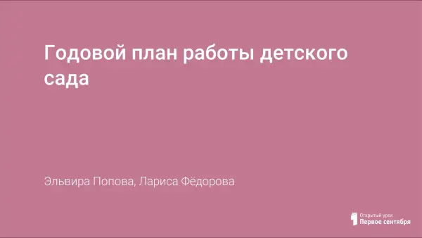 Годовой план работы на учебный год является обязательной документацией дошкольного образовательного учреждения. В нем определены направления, задачи и система мероприятий для решения задач в конкретном учебном году. Годовой план работы можно рассматривать как инструмент оперативного управления дошкольным образовательным учреждением. Годовой план - это конкретизация задач и мероприятий обозначенных в программе развития и образовательной программе.