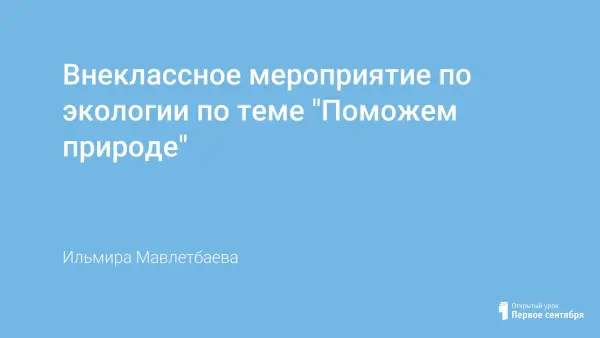 Внеклассное мероприятие с целью сформировать у детей знания о разнообразных видах деятельности школьников по защите природы, вызвать стремление к этой деятельности, дать установку на выполнение некоторых мероприятий по охране природы.