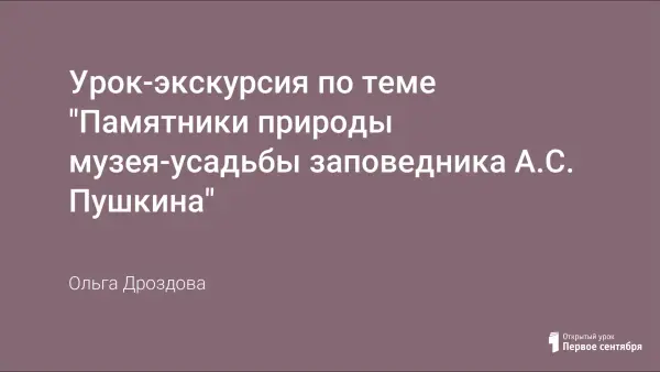 Проведение экскурсии возможно на уроках биологии в рамках регионального компонента и экологии для изучения понятий о особо охраняемых природных территориях, видового состава древесных растений на примере памятников природы Государственного историко-литературного музея-заповедника А.С. Пушкина (усадьба Вяземы), повышение экологического образования учащихся на примере особо охраняемых растений, развития умений работать с научной и художественной литературой.