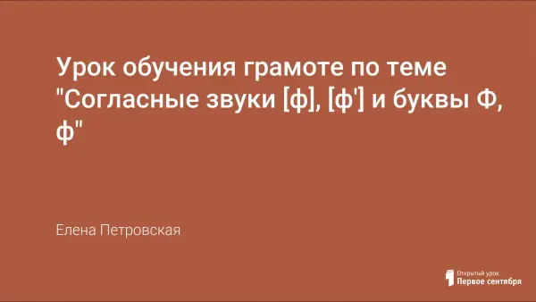 Урок обучения грамоте по теме "Согласные звуки [ф], [ф'] и буквы Ф, ф"