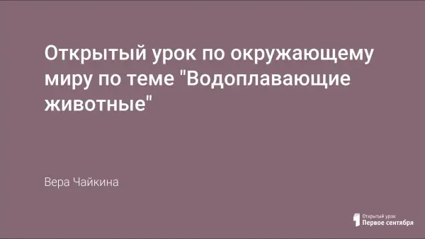 Урок естествознания в 1-м классе дает представление о животных, жизнь которых тесно связана с водой. Путем сравнения с ранее изученной белкой показывает общие признаки, присущие животным, внешне не похожим.