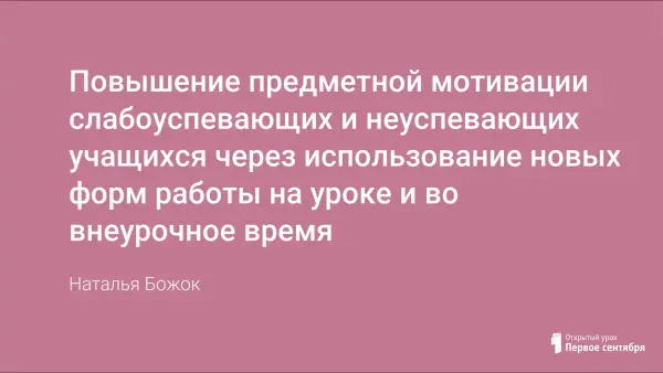 В статье рассматриваются основные причины неуспеваемости учащихся на уроках английского языка. Даются рекомендации, как повысить работоспособность детей во время урока. Называются разные виды работ со слабоуспевающими учащимися. Перечисляются разные формы и жанры урока. Указывается на решающую роль учителя при формировании мотивации в изучении английского языка.