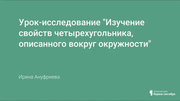Цель урока-исследования – построение учениками подвижного чертежа четырехугольника, описанного вокруг окружности, и самостоятельное экспериментальное обнаружение свойства равенства сумм его противоположных сторон.