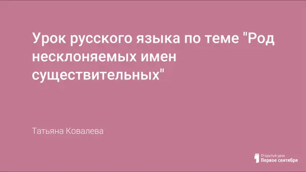 Автор на уроке формирует понятие о категории рода несклоняемых имен существительных; умения определять род несклоняемых имен существительных; совершенствует навыки синтаксического и пунктуационного анализа предложения.
