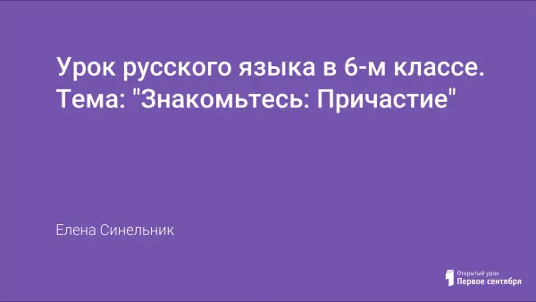 Урок в 6-м классе служит знакомству с грамматическими признаками, суффиксами причастия, обучению навыку нахождения причастий в речи, умению отличать их от других частей речи, воспитанию интереса к русскому языку, развитию творческих способностей.